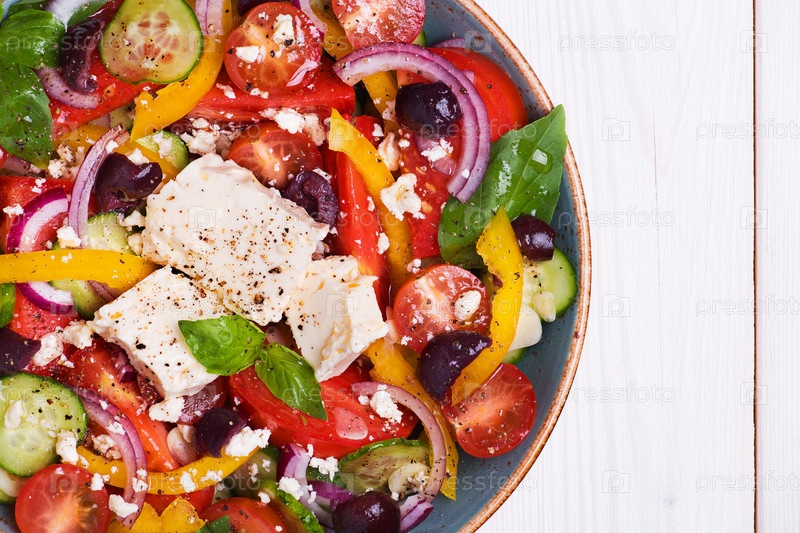 Греческий салат со свежими овощами, сыром фета, маслинами