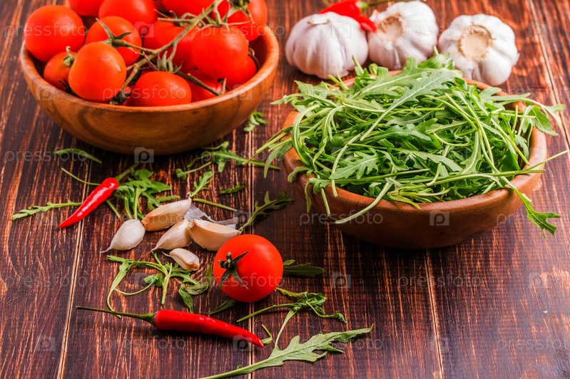 Помидоры, руккола, перец, чеснок