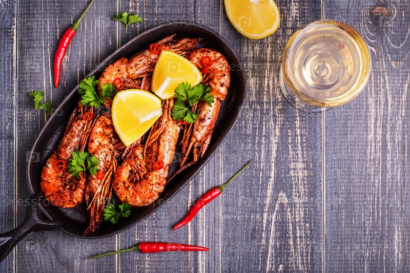Жареные креветки с лимоном и белым вином