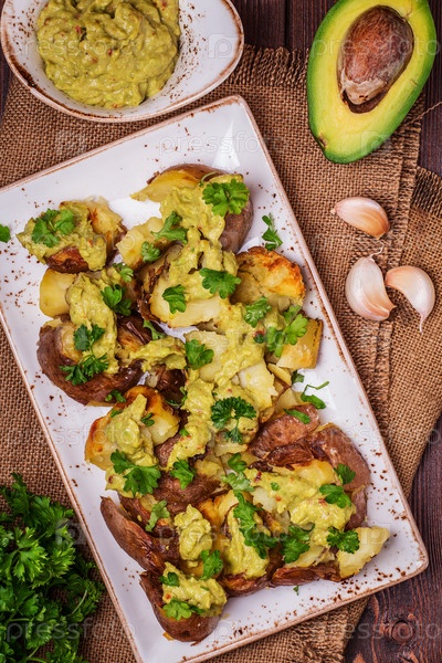 Печеный картофель подается с гуакамоле