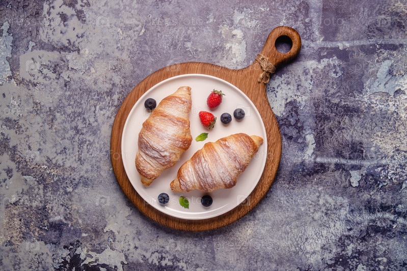 Завтрак с круассанами и свежими фруктами
