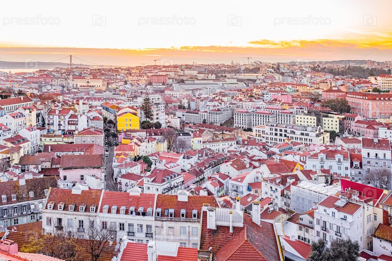 Красочный вид сверху на Лиссабон, Португалия