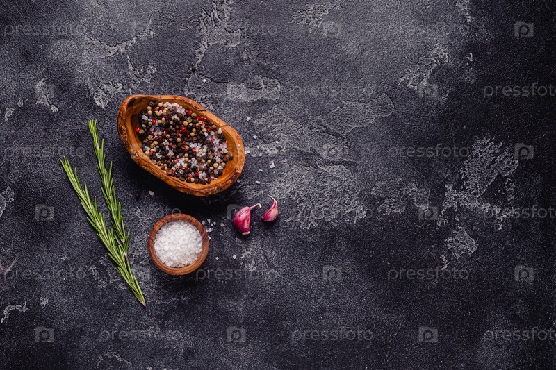 Травы и приправы на фоне черного камня