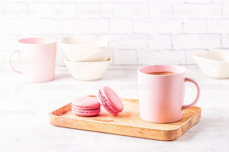 Французские миндальное печенье и чашка кофе