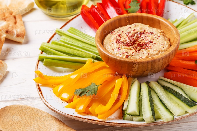 Домашний хумус с ассорти из свежих овощей и лавашом