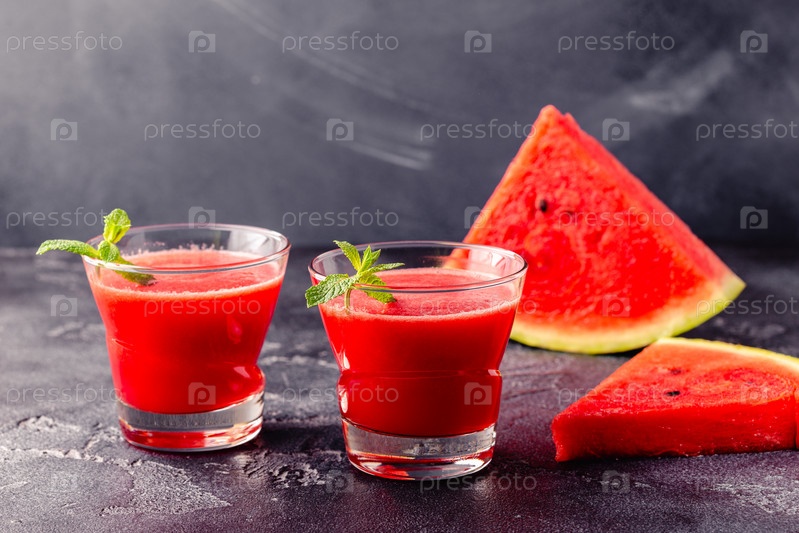 Свежий вкусный вкусный арбузный сок на темном фоне
