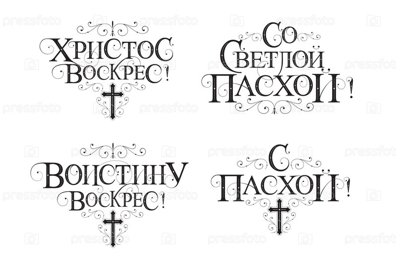 Векторная иллюстрация. Набор надписей на русском языке к православной Пасхе. Векторный дизайн православной пасхальной типографии для поздравительных открыток и плакатов. Русский перевод: Со светлой Пасхой