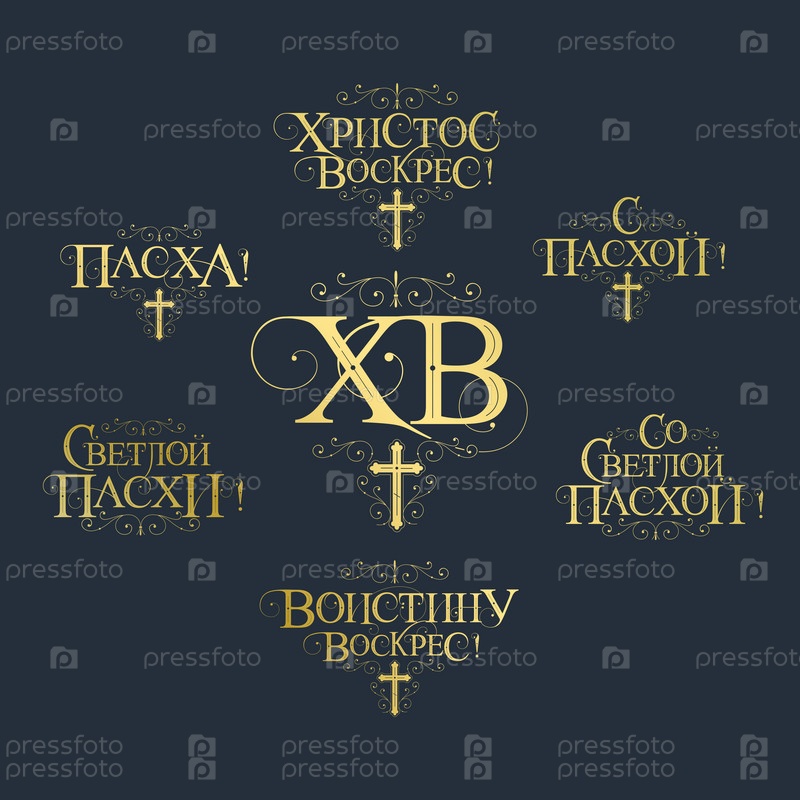 Векторная иллюстрация. Набор надписей на русском языке к православной Пасхе. Векторный дизайн православной пасхальной типографии для поздравительных открыток и плакатов. Русский перевод: Со светлой Пасхой