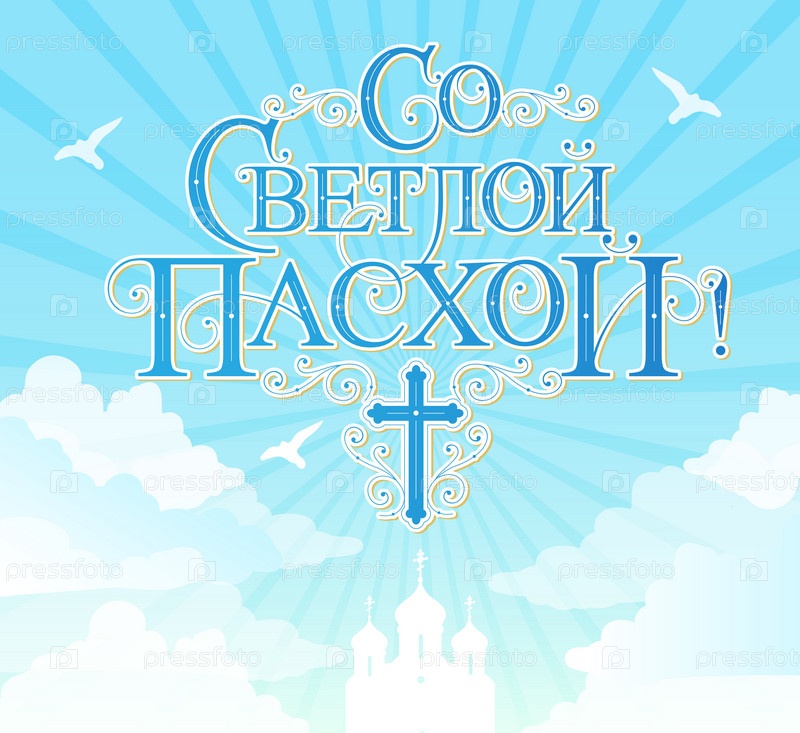 Векторная иллюстрация. Со Светлой Пасхой-православным праздником, праздничная надпись на русском языке. Векторный дизайн православной пасхальной типографии для поздравительных открыток и плакатов. Русский перевод: Со светлой Пасхой