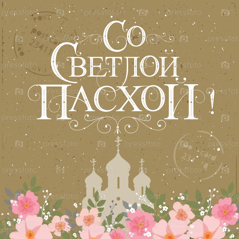 Векторная иллюстрация. Со Светлой Пасхой-православным праздником, праздничная надпись на русском языке. Векторный дизайн православной пасхальной типографии для поздравительных открыток и плакатов. Русский перевод: Со светлой Пасхой