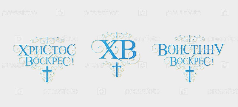 Векторная иллюстрация. Набор надписей на русском языке к православной Пасхе. Векторный дизайн православной пасхальной типографии для поздравительных открыток и плакатов. Русский перевод: Со светлой Пасхой