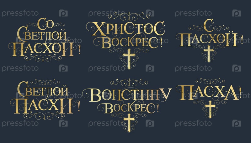 Векторная иллюстрация. Набор надписей на русском языке к православной Пасхе. Векторный дизайн православной пасхальной типографии для поздравительных открыток и плакатов. Русский перевод: Со светлой Пасхой