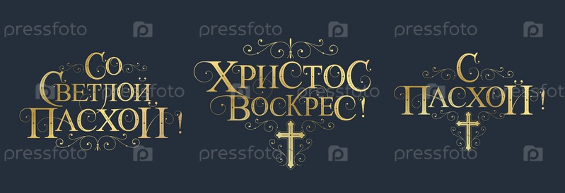 Векторная иллюстрация. Набор надписей на русском языке к православной Пасхе. Векторный дизайн православной пасхальной типографии для поздравительных открыток и плакатов. Русский перевод: Со светлой Пасхой