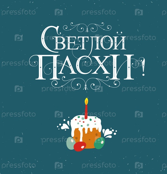 Векторная иллюстрация. Со Светлой Пасхой-православным праздником, праздничная надпись на русском языке. Векторный дизайн православной пасхальной типографии для поздравительных открыток и плакатов. Русский перевод: Со светлой Пасхой