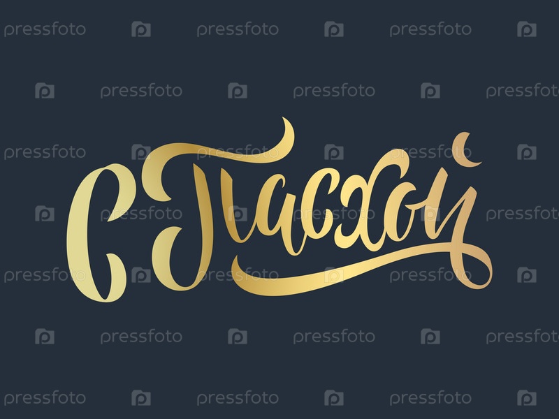 Векторная иллюстрация. На пасхально-православный праздник праздничная надпись на русском языке. Векторный дизайн православной пасхальной типографии для поздравительных открыток и плакатов. Русский перевод: На Пасху