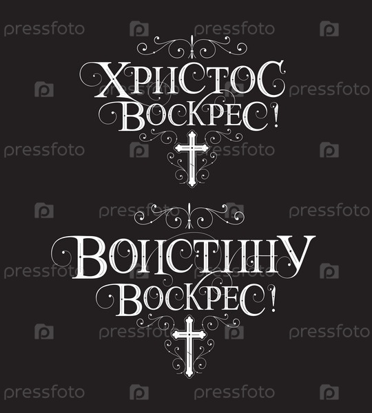 Векторная иллюстрация. Набор надписей на русском языке к православной Пасхе. Векторный дизайн православной пасхальной типографии для поздравительных открыток и плакатов. Русский перевод: Со светлой Пасхой