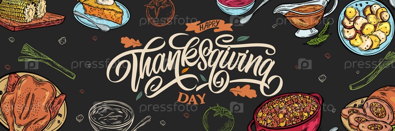 Векторная иллюстрация. С Днем Благодарения типографский векторный дизайн для поздравительных открыток и плакатов на праздновании шаблона текстурного фона. С Днем Благодарения надпись, надпись., Векторная иллюстрация . С Днем Благодарения типографский вект