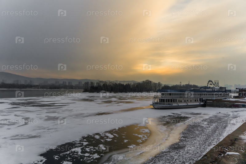 Морознай вечер над Енисеем в центре Красноярск