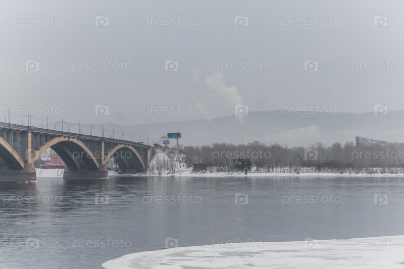 Морознай вечер над Енисеем в центре Красноярск