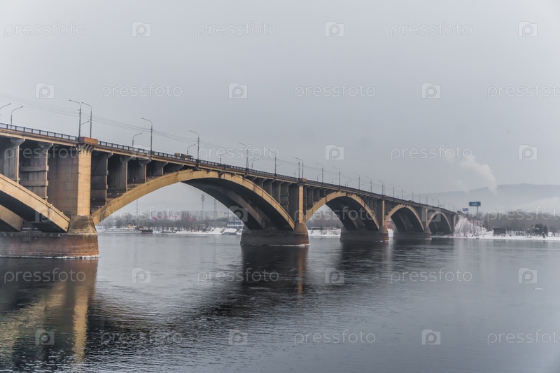Морознай вечер над Енисеем в центре Красноярск