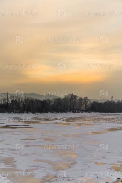 Морознай вечер над Енисеем в центре Красноярск