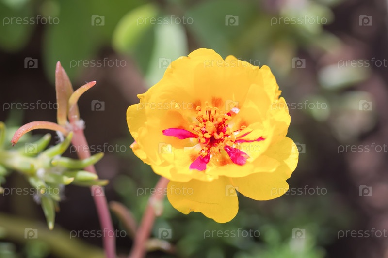 Цветок Portulaca oleracea желтый.Цветочный фон