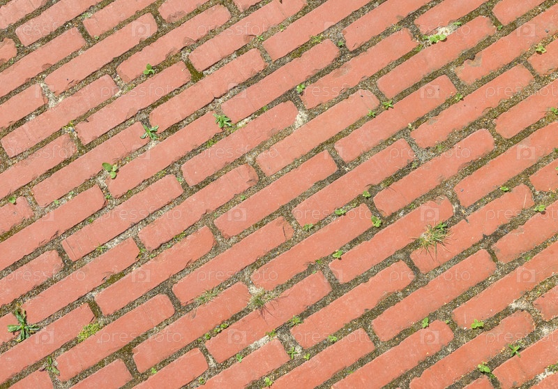 Брусчатка из красного кирпича на тротуаре