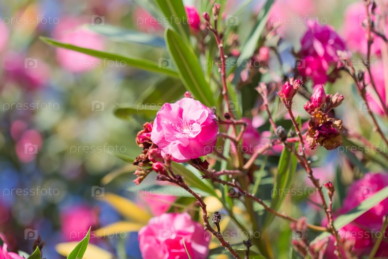 Розовые цветы олеандра или олеандр нериум