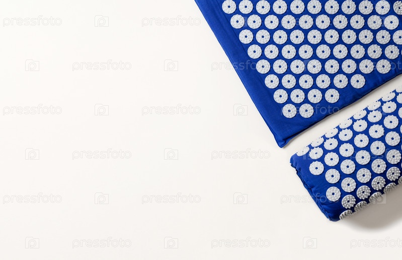 Массажные коврики на белом фоне. Концепция альтернативной медицины