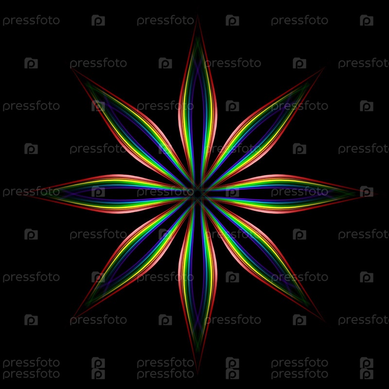 Элемент дизайна восьмиконечной звезды из красочных светящихся линий на черном