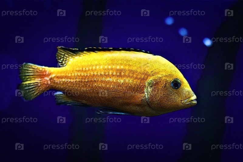 Иллюстрация аквариумной рыбы малавийской цихлиды на темно-синем фоне