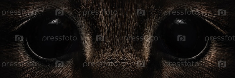 Черные глаза лохматого зверя крупным планом