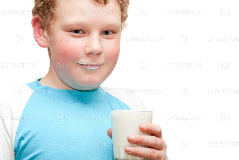 Мальчик пьет кефир из стакана