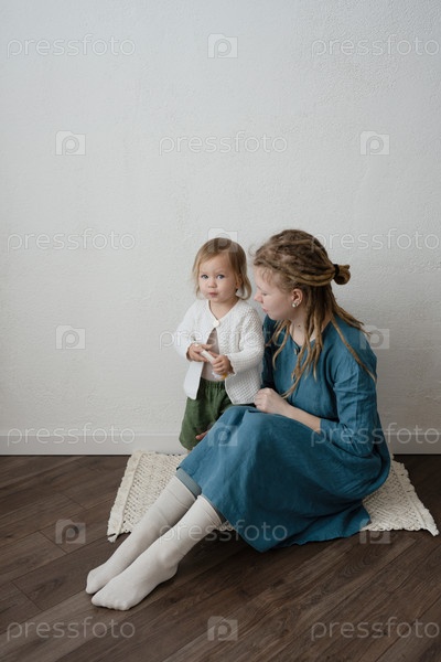 Молодая мать и ее маленькая дочь играют вместе в комнате