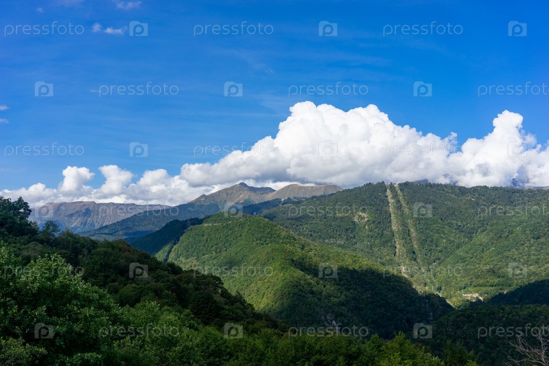 Красивый горный пейзаж на фоне голубого неба с облаками