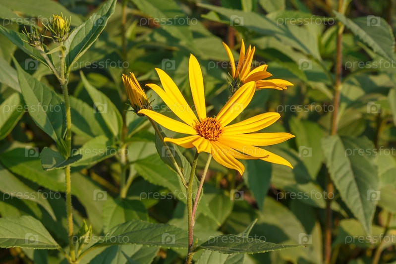 Иерусалимский артишок. Цветущий красивый желтый цветок топинамбура