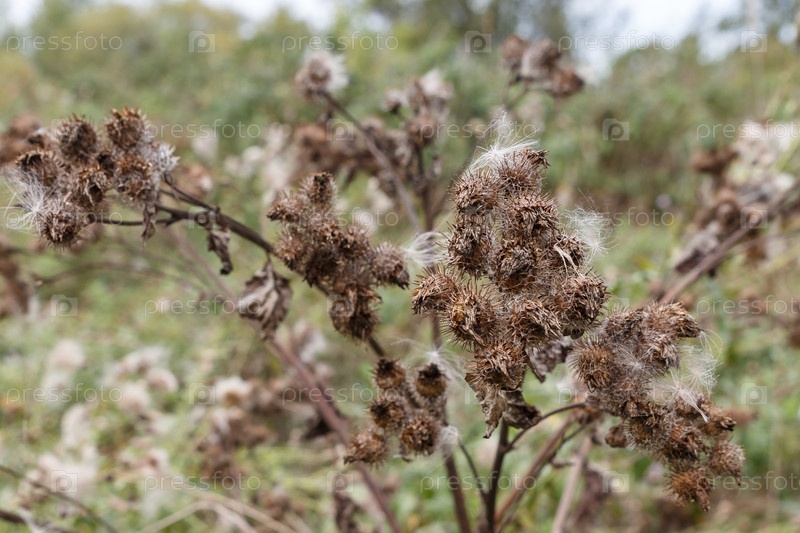 Большой лопух. Арктиум лаппа. Сухие шипы лопуха осенью