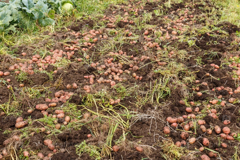 Сбор картофеля. Выкопал картошку, лежащую на земле в поле