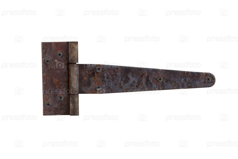 Ржавая металлическая дверная петля. Дверная петля на белом фоне
