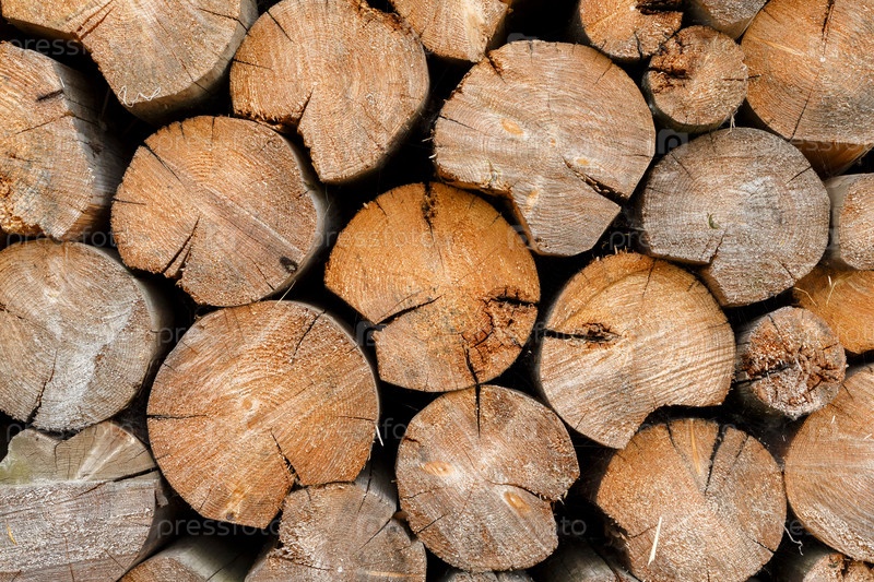 Круглые дрова укладываются на поленницу. Текстура дерева и фон