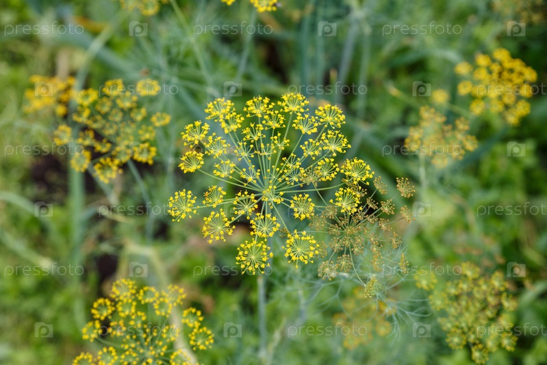 Анетум гравеоленс. Свежий укроп растет на грядке