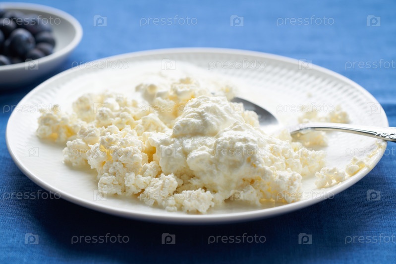 Тарелка свежего творога, завтрак с молочными продуктами, белковая пища
