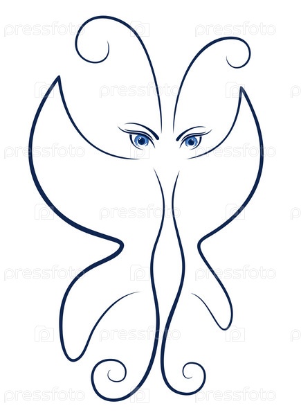 Набросок синей стилизованной бабочки