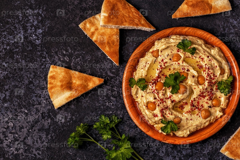 Классический хумус на тарелке