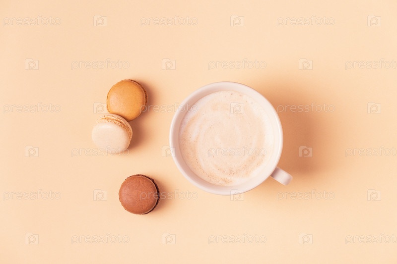 Чашка кофе с миндальным печеньем на пастельном фоне