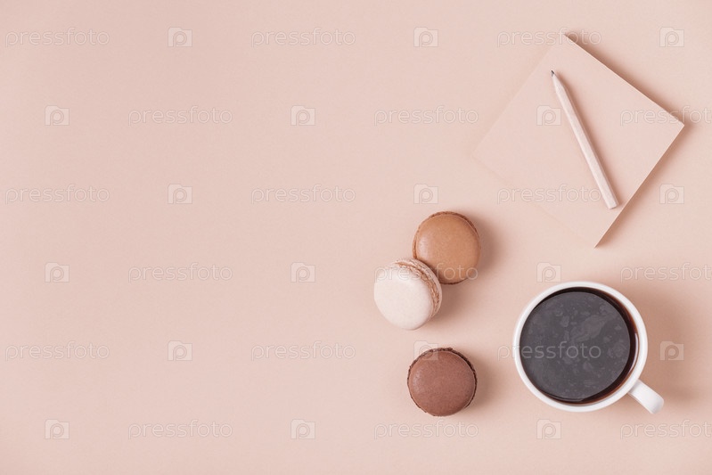 Чашка кофе с миндальным печеньем на пастельном фоне