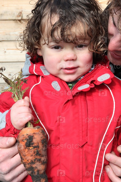 Маленький мальчик держит морковь