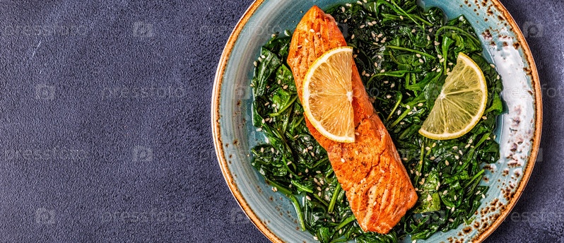 Лосось на гриле со шпинатом