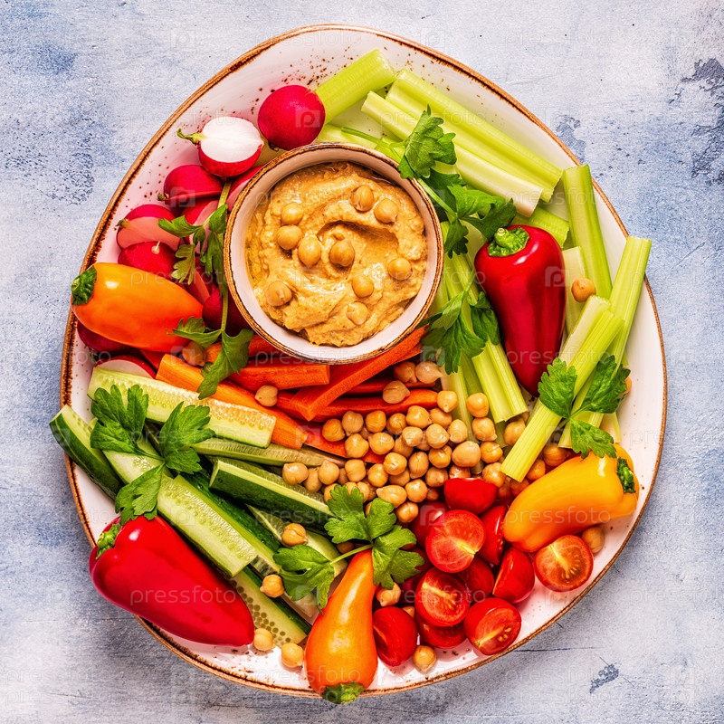 Хумус с различными свежими сырыми овощами
