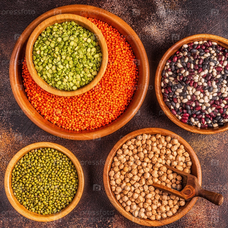 Ассортимент бобовых - чечевица, горох, мунг, нут и разные бобы